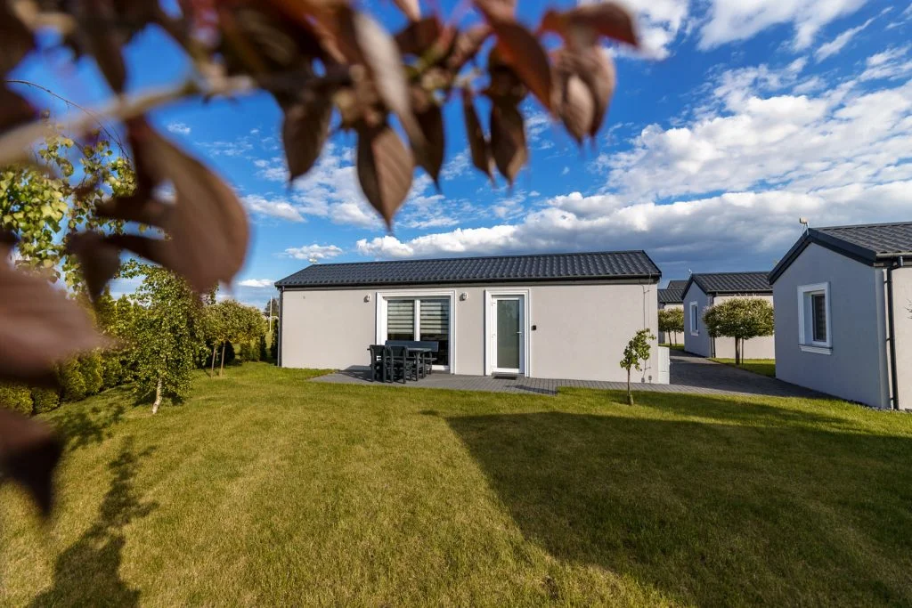 Każdy domek posiada salon, kuchnię, łazienkę oraz sypialnie. Wszystko, czego potrzebujesz na krótki lub dłuższy pobyt, masz na miejscu.