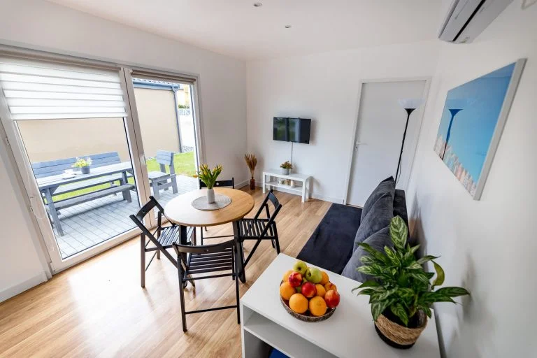 Nasze domki w Zatorze to idealna baza noclegowa dla osób odwiedzających Energylandię. Przestronny salon z klimatyzacją, wygodną sofą i telewizorem zapewnia komfortowy wypoczynek po dniu pełnym wrażeń. Każdy domek został zaprojektowany z myślą o funkcjonalności i wygodzie, dzięki czemu poczujesz się jak w domu.